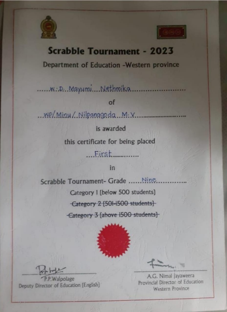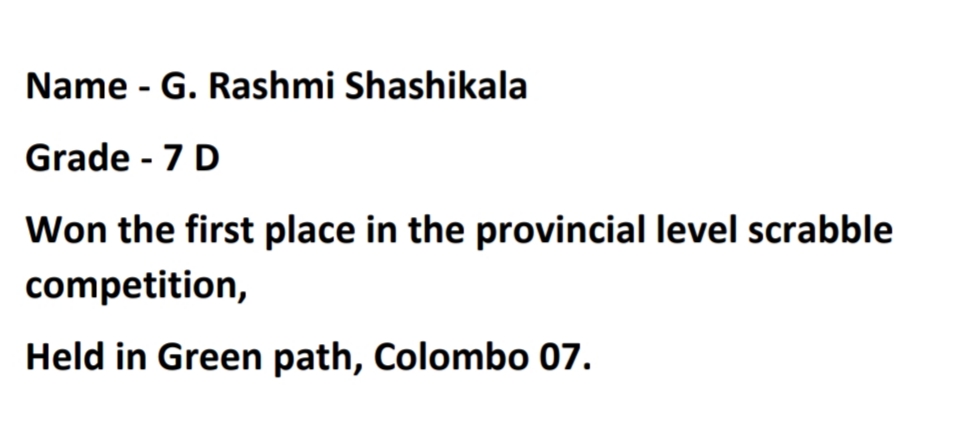 නියෝජ්ය විදුහල්පති පණිවිඩය